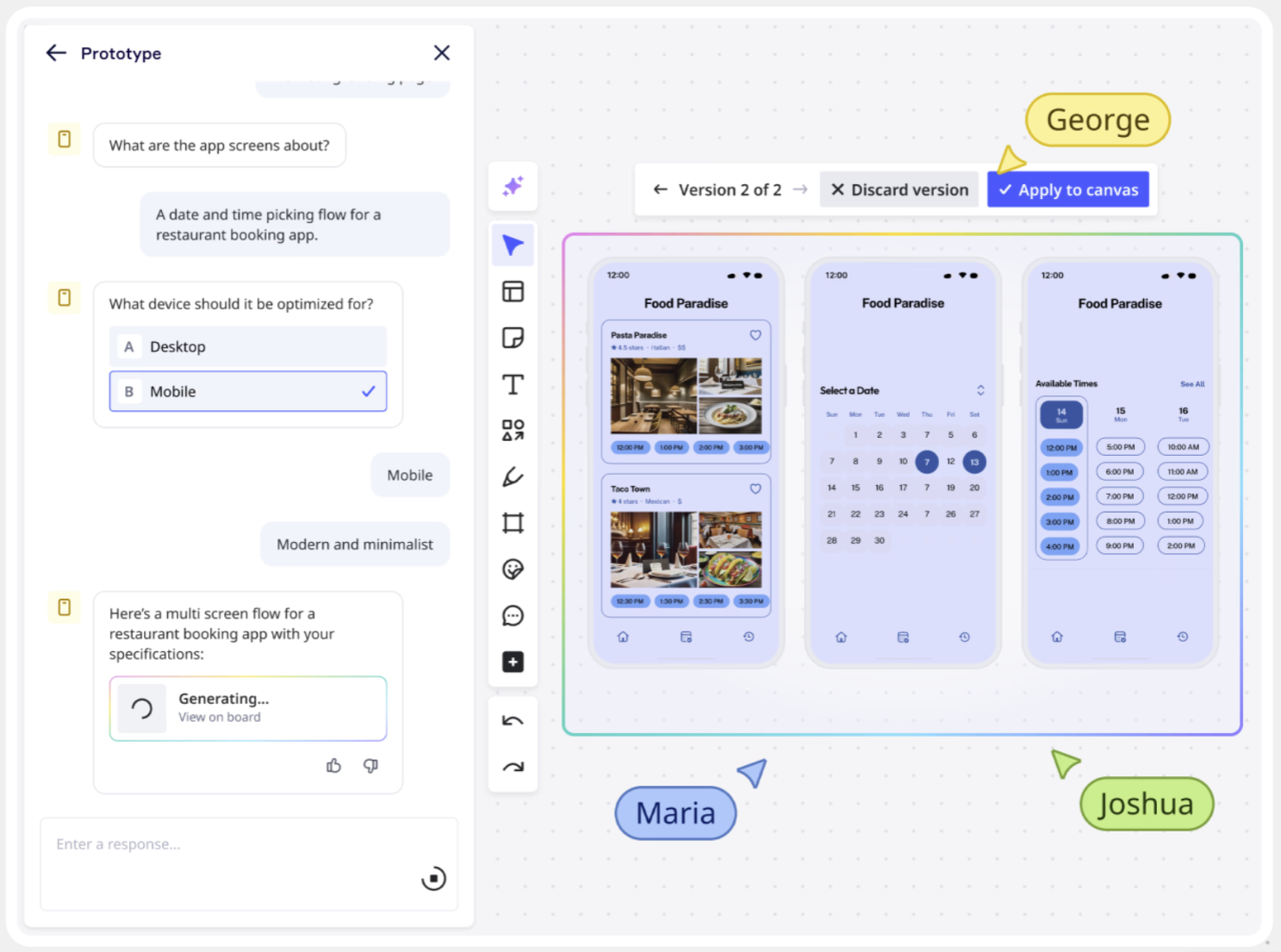 - Accelerate discovery as cross-functional teams move from ideas to aligned designs in one shared space.