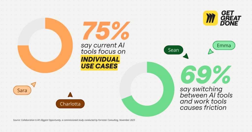 According to the 2025 study, which surveyed 500+ decision-makers, 75% of leaders admit current AI tools focus almost exclusively on individual productivity. This creates the “silo tax,” the hidden cost of friction and context-switching.