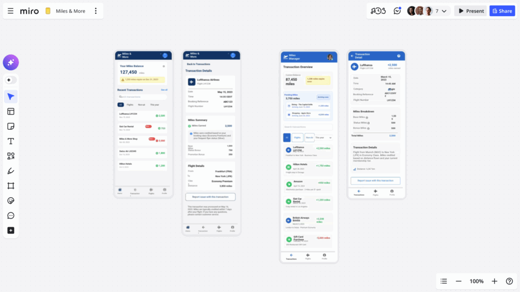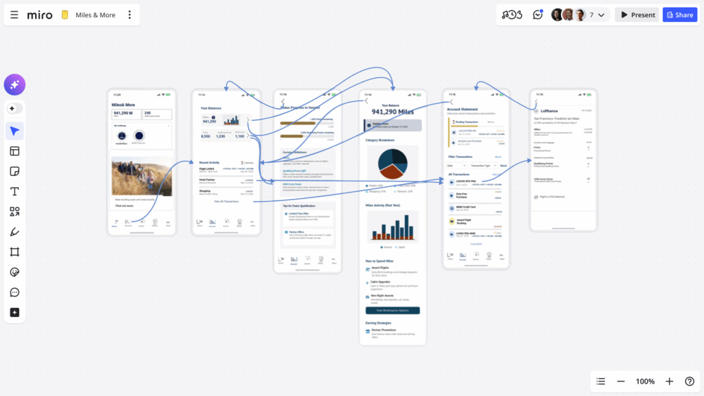 Miro Prototypes enables the full team to explore and validate product concepts before writing a line of code, ensuring the Miles & More team builds the right solution, with confidence. This improves how quickly product managers are able to respond and adapt to member feedback — and, in turn, the overall user experience for Miles & More members — and helps Miles & More stay competitive.