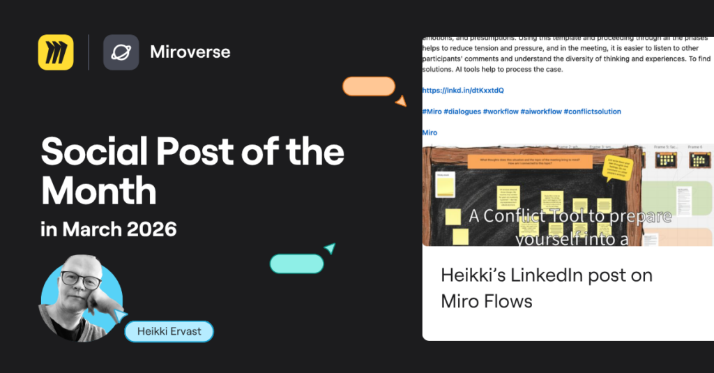 Our Social Post of the Month goes to Heikki Ervast, who shared a standout LinkedIn post highlighting how to use Miro to design and run AI-powered dialogues and workflows.