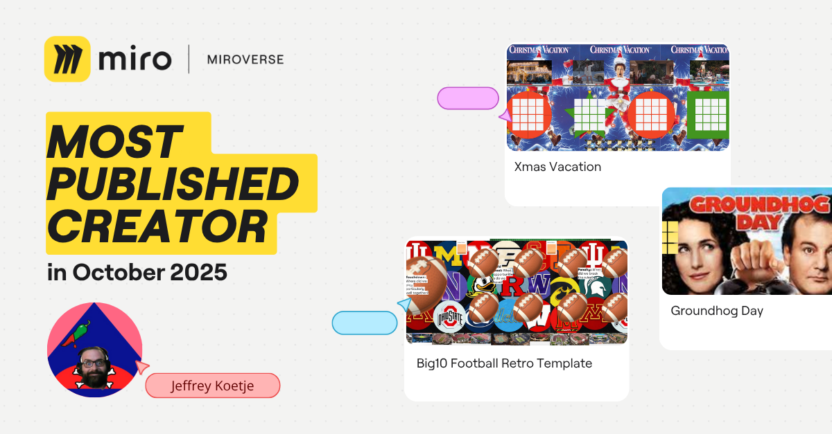 115 templates landed on Miroverse in October! From spooky season themes to planning ahead with a 2026 Calendar—and new resources for Product Design or AI—there’s something for everyone to jumpstart their next collaboration. This is exactly why we love Miroverse!