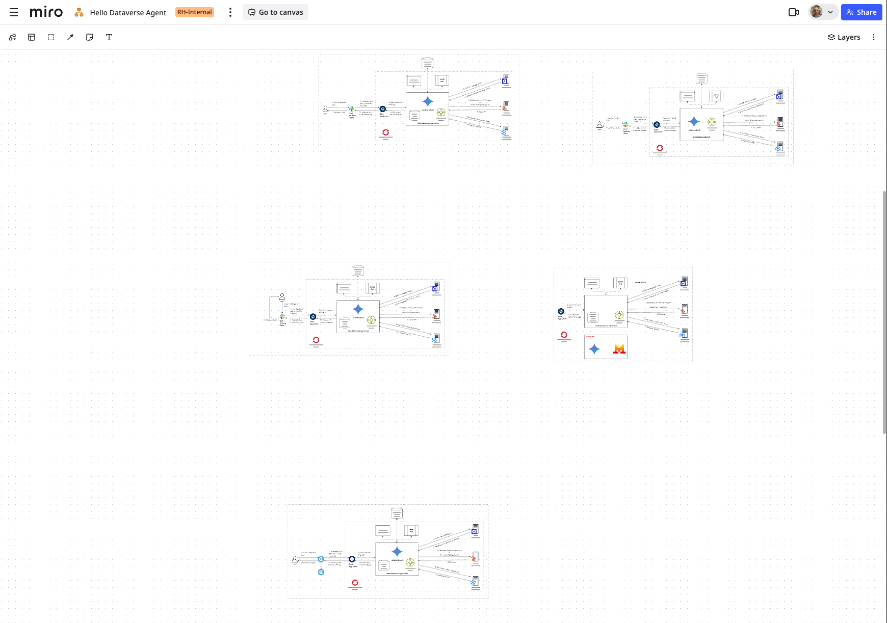 - Designed their data consolidation strategy by visualizing how their systems — internally called the Dataverse — would connect together in Miro, mapping the architecture for MCP servers that would eliminate the need for SQL queries or complex API access across their data sources.