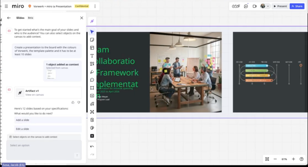 - Miro Slides for storytelling and presenting collaborative AI workflows