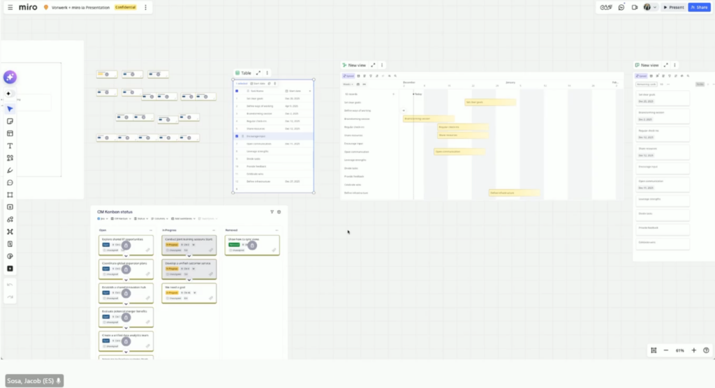 The session didn’t just capture attention. It captured actionable feedback that stayed connected to work. Because everything happened in Miro, Jacob could immediately convert sticky notes into other digital formats, generating project trackers with AI, creating roadmaps, and pushing tasks directly to Jira. The insights didn’t disappear into a separate tool. They became the foundation for ongoing work.