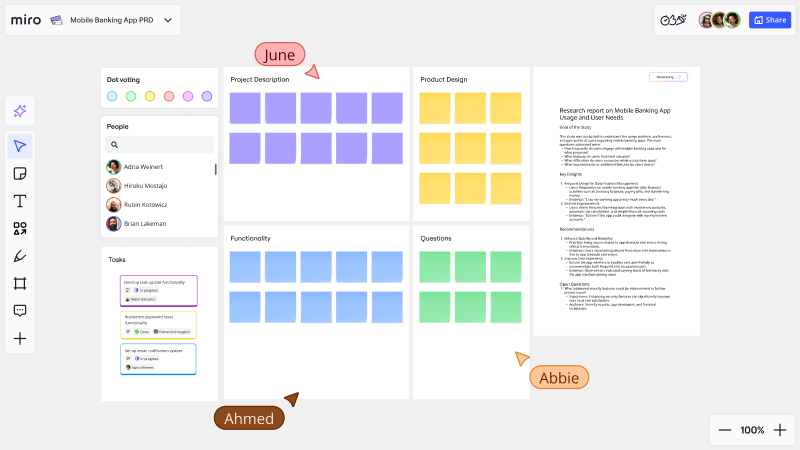 Bring design, engineering, product, and marketing teams together in Miro. With tools to support solution brainstorms, product briefs, technical diagrams, scaled product planning, presentations, and prototypes (coming soon!), Miro's AI-powered platform redefines how cross-functional teams work together by eliminating the friction between teams and tools.