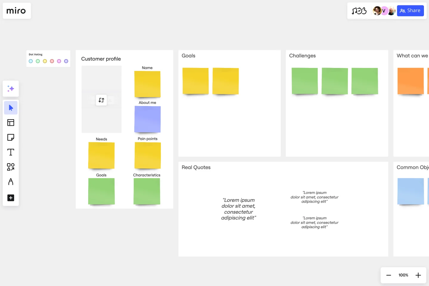 Yes! Miro is built for real-time collaboration where multiple team members can feed into a board simultaneously. Everyone with access can leave comments, vote on pain points, or tag each other for feedback. Miro also offers comment threads and Talktrack for asynchronous collaboration.
