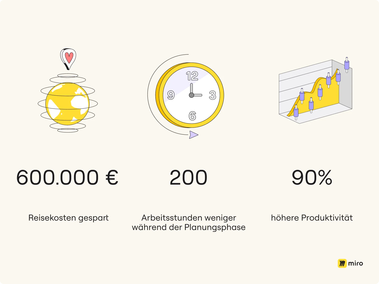 Miro gibt den Catena-X-Mitgliedern die Flexibilität und Freiheit, remote zu arbeiten und unabhängig von ihrem jeweiligen Standort in Verbindung zu bleiben. Dies hat ihnen bereits mehr als 600.000 € an Reisekosten gespart. Zugleich stieg ihre Produktivität um 90 % dank des Effizienzgewinns im sicheren, kollaborativen Workspace von Miro.