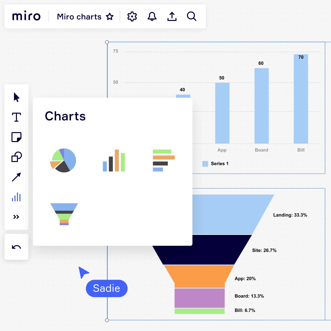 Mehr als 300 bearbeitbare Vorlagen helfen dir, schneller zu starten, von Vorlagen für BSC und online SWOT Analyse bis hin zu Wettbewerbsanalyse, Umfragen, Zeitstrahlen und Gantt Diagrammen online. Dank der zahlreichen Funktionen von Miro kannst du das volle Potenzial deines Teams ausschöpfen, ohne ständig das Tool wechseln zu müssen.