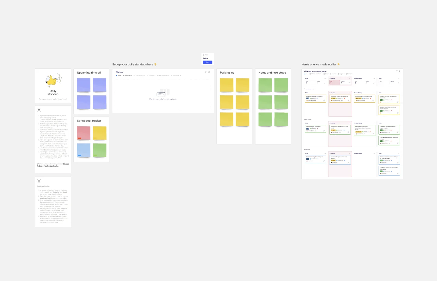 Planen und ausführen: Verwende die Vorlage, um deine Sprints zu planen, den Fortschritt zu verfolgen und Aufgaben zu verwalten. Nutze Miros interaktive Features wie Notizen, Kommentieren und Abstimmung, um die Zusammenarbeit zu verbessern.