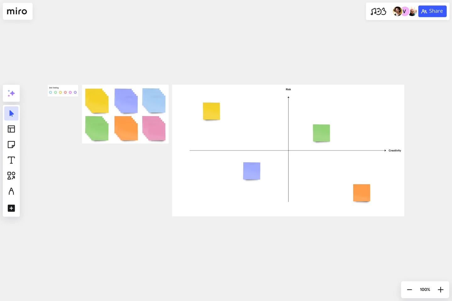 Sobald du eine Vielzahl von Elementen auf dem Raster platziert hast, wird das Annahmeraster zu einem großartigen Gesprächstool. Hole dein Team in einen Raum und lass sie die Ergebnisse durchgehen. Neue Annahmen könnten entstehen, oder du verschiebst Elemente auf dem Raster.