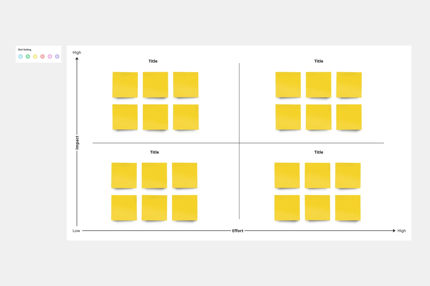 Entscheidungen zu treffen kann ein komplexer Prozess sein, besonders wenn mehrere Faktoren berücksichtigt werden müssen. Die Vorlagen für Entscheidungsmatrixen von Miro sind so konzipiert, dass sie diesen Prozess vereinfachen, indem sie einen strukturierten Ansatz bieten, um Optionen zu bewerten und zu priorisieren. Egal, ob du Anfänger oder fortgeschrittener Nutzer bist, diese Vorlagen sind intuitiv und einfach zu verwenden, sodass du fundierte Entscheidungen effizient treffen kannst.