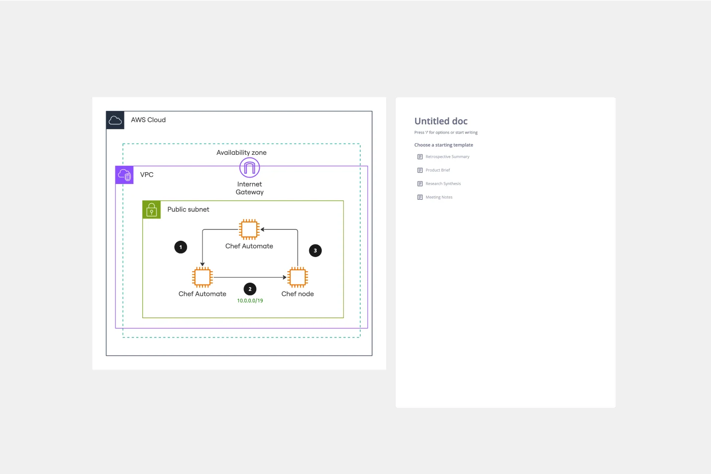 Die AWS Chef Automate-Architekturvorlage ist eine visuelle Darstellung des AWS Chef-Frameworks. Verfolge deine Cloud-Lösungen ganz einfach und automatisiere operative Aufgaben in größerem Maßstab.