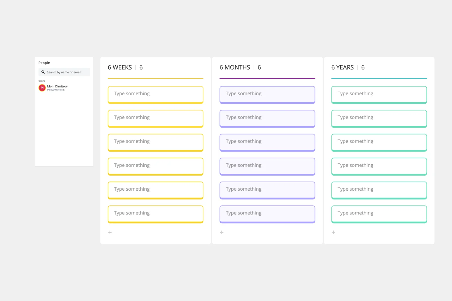 Arbeite mit deinem Team zusammen: Teile die Vorlage mit deinem Team, um eine Zusammenarbeit in Echtzeit und Feedback zu ermöglichen. So stellt ihr sicher, dass alle auf dem gleichen Stand sind und zum Erfolg des Projekts beitragen können. Die Funktionen von Miro zur Zusammenarbeit erlauben es Teammitgliedern, reibungslos und ortsunabhängig zusammenzuarbeiten. Mit diesen Vorlagen können Teams effizienter brainstormen, planen und Projekte umsetzen, was zu besseren Ergebnissen und höherer Produktivität führt. Entdecke alle Vorlagenkategorien und finde die perfekten Tools für Brainstorming, Planung, Zusammenarbeit und Ausführung – konzipiert, um deinen Workflow zu optimieren und deine Ideen zum Leben zu erwecken.