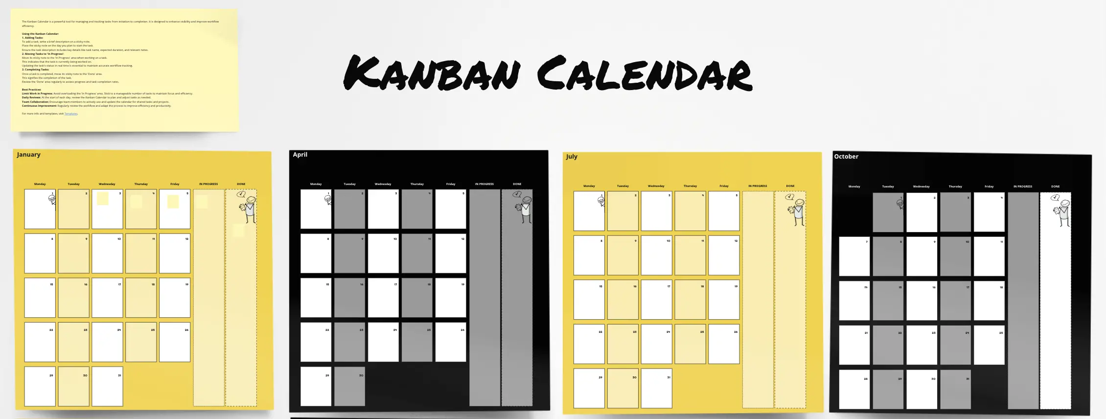 Comenzar a usar nuestras plantillas de calendario editables es tan sencillo como arrastrar y soltar. La plataforma de Miro te permite personalizar tu plantilla de calendario acorde a lo que necesitas, ya sea un ejemplo de calendario mensual para tu equipo o una plantilla de calendario semanal personal.