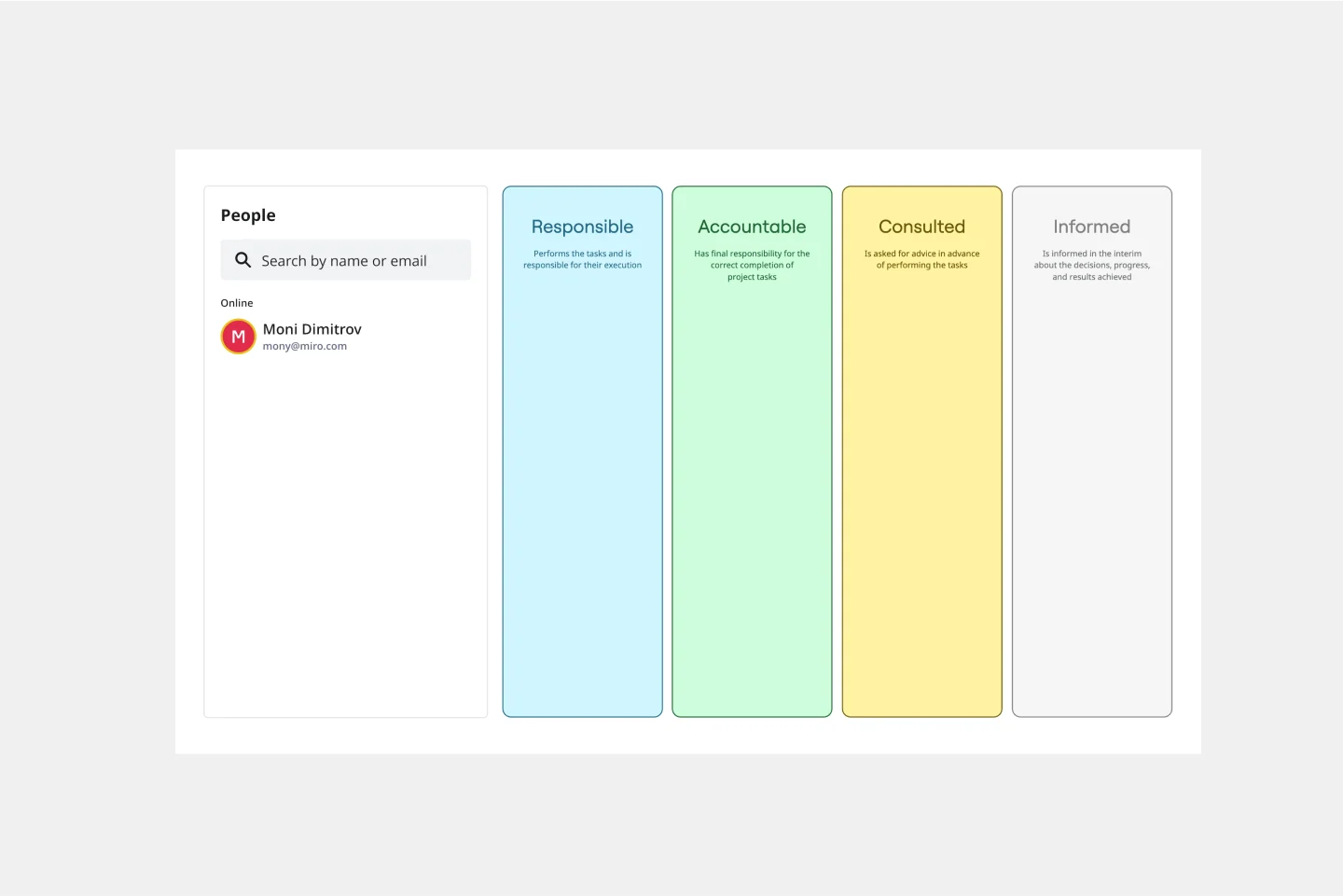 Colabora con tu equipo: Comparte la plantilla con los miembros de tu equipo. Usa las funciones de colaboración de Miro para trabajar juntos en tiempo real, haciendo ajustes y agregando comentarios según sea necesario.