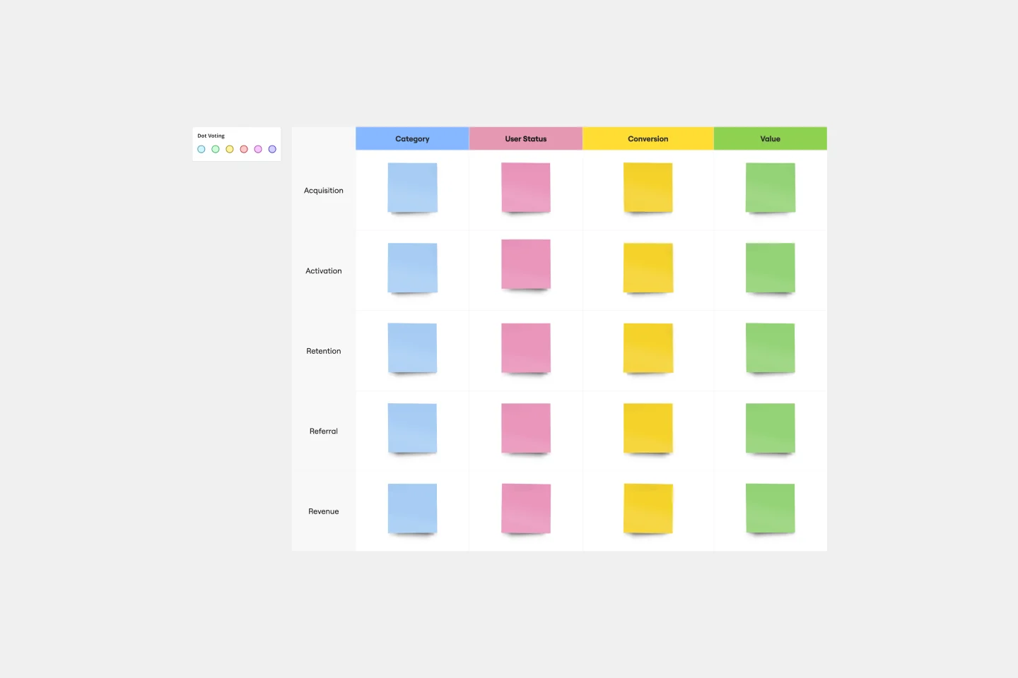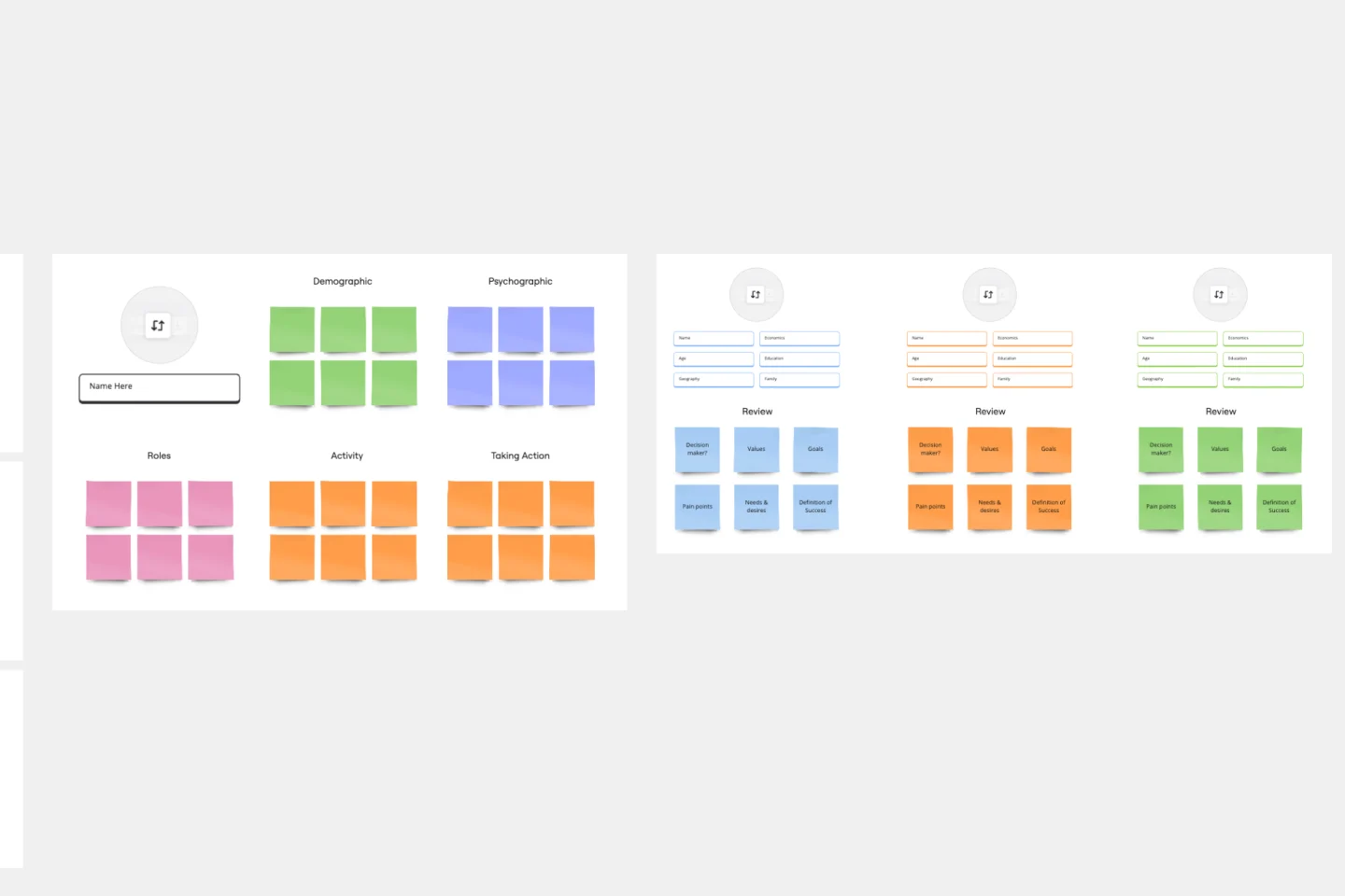 La colección de plantillas de marketing de Miro optimiza y mejora tus esfuerzos de marketing. Ya sea que estés planificando una campaña, desarrollando una estrategia, o rastreando el rendimiento, nuestras plantillas ofrecen una manera estructurada y visualmente atractiva de organizar tu trabajo. Estas plantillas están diseñadas para ayudarte a ahorrar tiempo, mantener la coherencia y garantizar que todos los miembros del equipo estén alineados con tus objetivos de marketing.