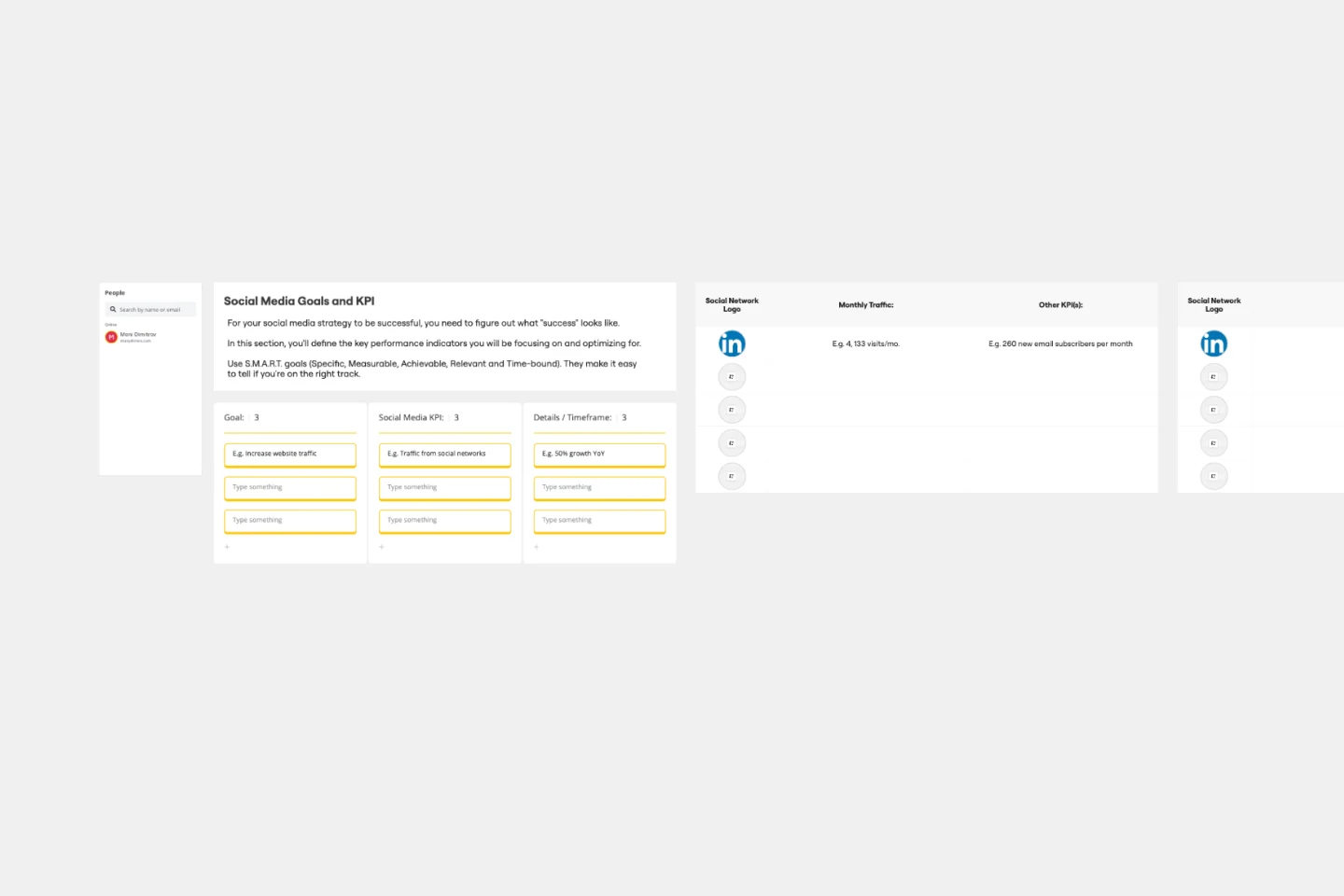 La plantilla Estrategia de redes sociales optimiza la planificación, fomenta la eficiencia y la colaboración, y permite ajustes y optimizaciones rápidas a tus campañas de redes sociales. Con su adaptabilidad, puedes personalizar la plantilla para satisfacer las necesidades de tu campaña y responder a las cambiantes tendencias de las redes sociales.
