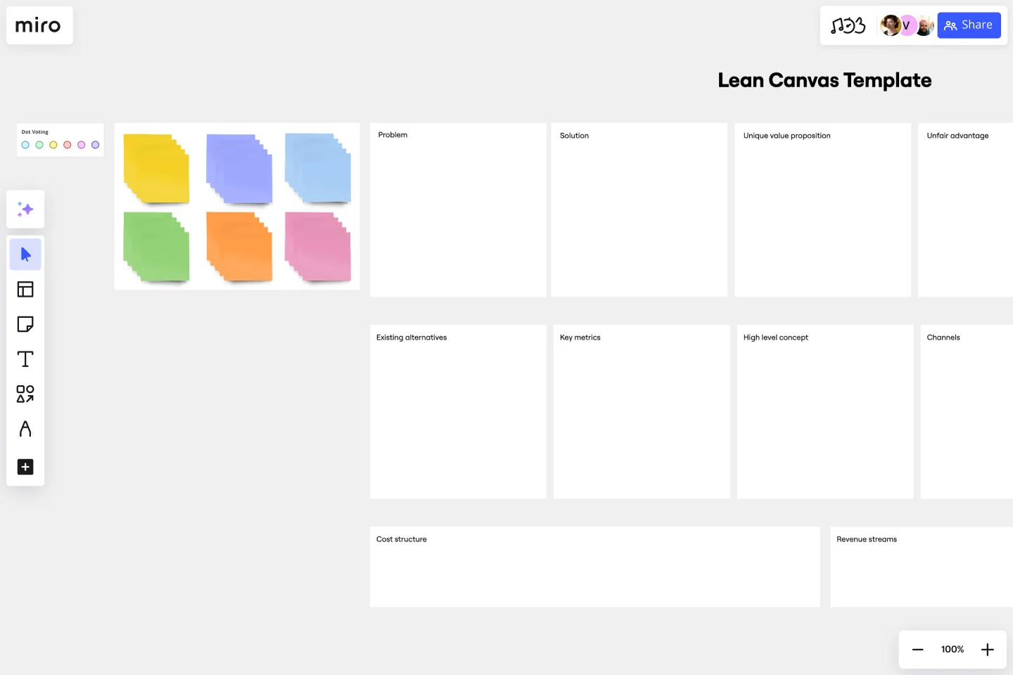 Que construisez-vous, pourquoi le construisez-vous, et pour qui le construisez-vous ? Ce sont les grandes questions qui guident les entreprises et équipes vers le succès — et Lean UX vous aide à trouver les réponses. Particulièrement utile lors de la recherche, la conception et la planification de projets, cet outil vous permet d’apporter rapidement des améliorations au produit et de résoudre des problèmes commerciaux, conduisant à un produit plus centré sur le client. Ce modèle vous permettra de créer un canevas Lean UX structuré autour de huit éléments clés : Problème commercial, Résultat commercial, Utilisateurs et clients, Avantages pour l'utilisateur, Idées de solutions, Hypothèse, Hypothèses, Expérimentation.