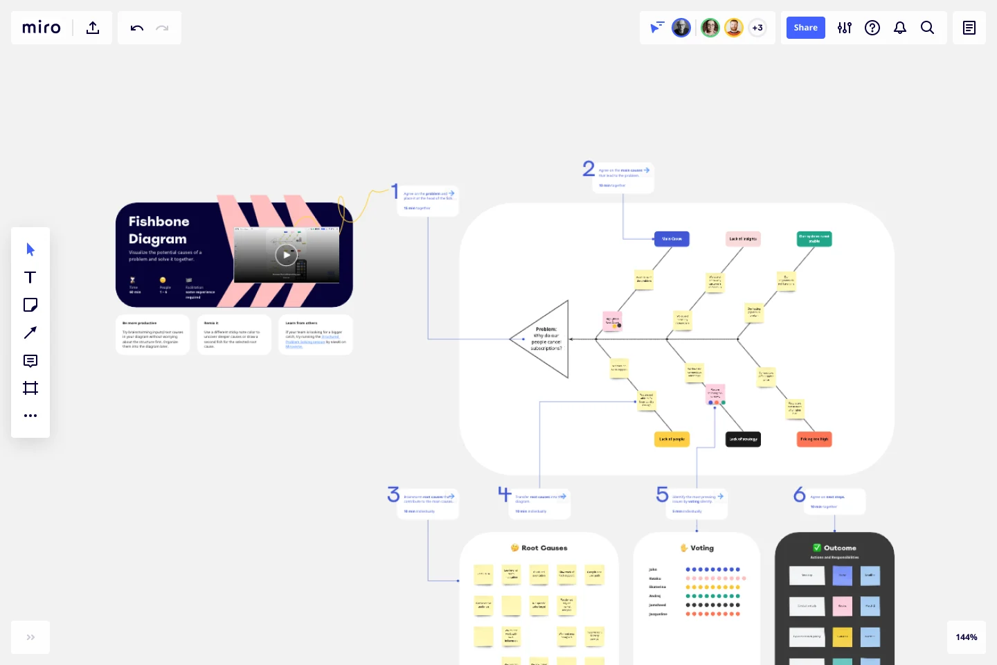 Segui questi semplici passaggi per creare un efficace diagramma a lisca di pesce con l'area di lavoro digitale di Miro.