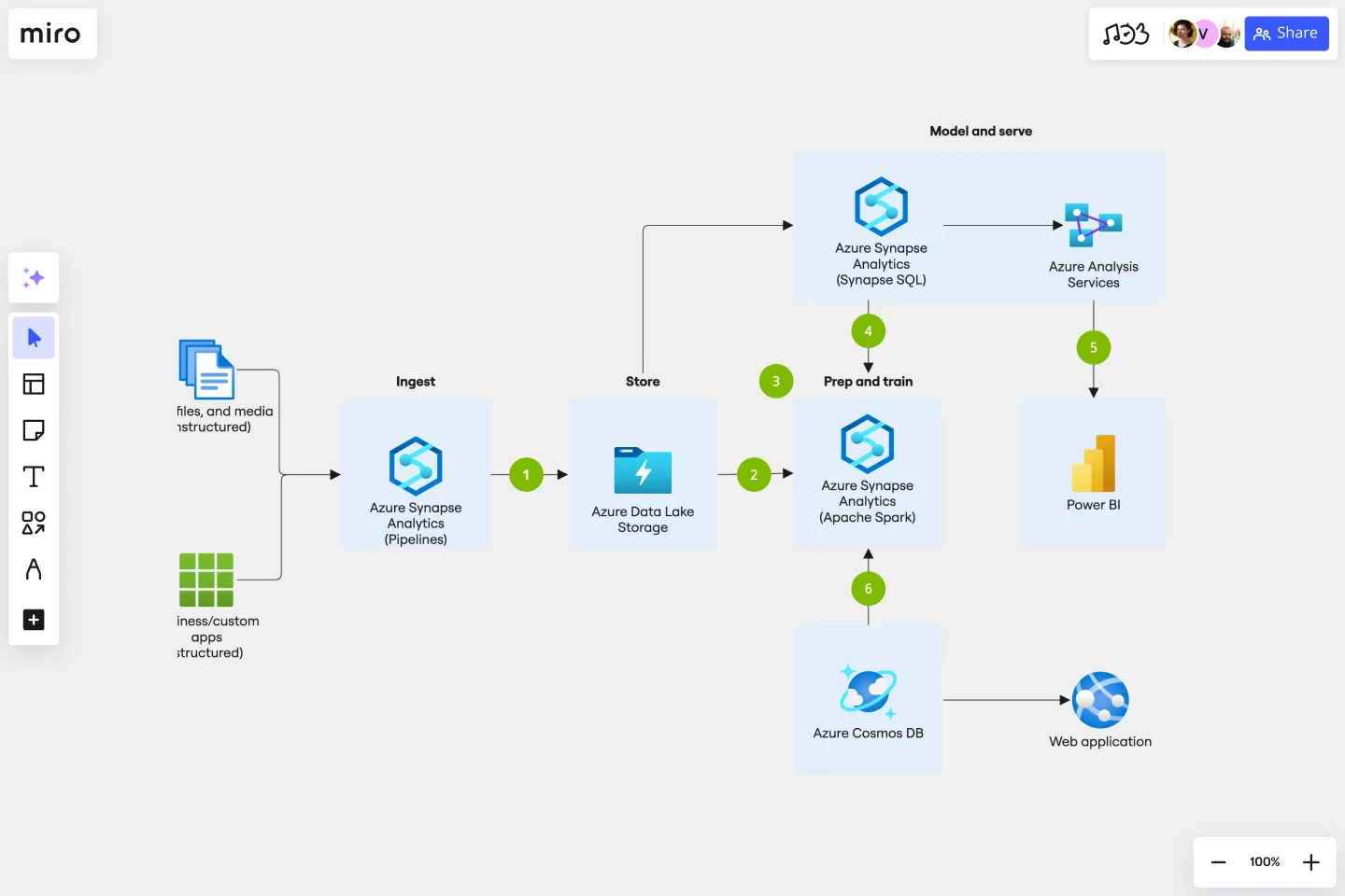 Puoi utilizzare il modello di flusso dei dati Azure per trasformare i tuoi dati in informazioni strategiche e prendere decisioni meglio informate. Raccogli i dati, analizzali e usali per prendere le decisioni che riguardano la tua architettura; dai dati sui costi, alle prestazioni, al carico degli utenti, utilizzare i dati ti permetterà di fare le scelte giuste all'interno del tuo ambiente.