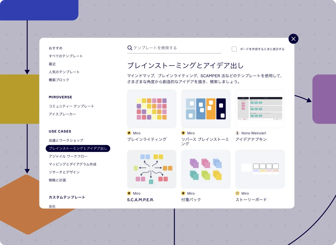 以下のリンクからブレインストーミングに便利なツールやテンプレートをご覧ください。