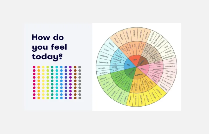 目標指数などの数値を使った定量的な結果だけでなく、Miro では感情の輪や チェックインシートなど、メンバーの気分や考えを理解できるテンプレートが 利用できます。
