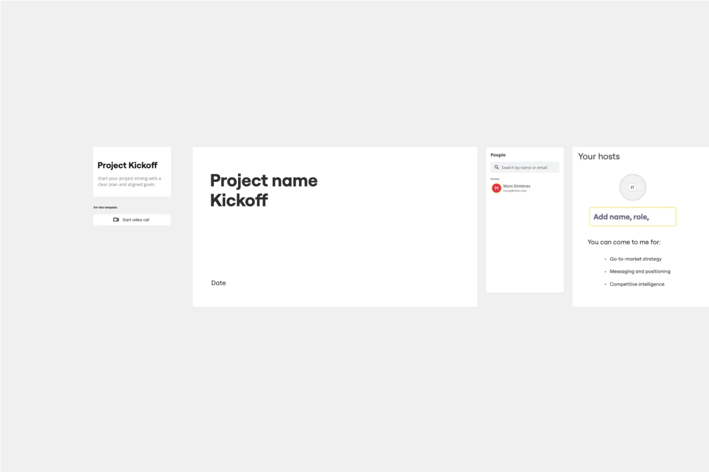 Miro ボードを開いた後は、ボード内のテンプレートライブラリからチームのニーズに合ったアイス ブレイクテンプレートや会議テンプレートをボードに追加しましょう。
