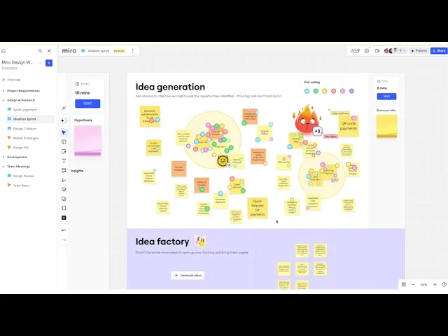 Miro Scenes で、構造化された魅力的なデザインレビューを実行。関係者が簡単に投票し、即座にフィードバックを提供できます。