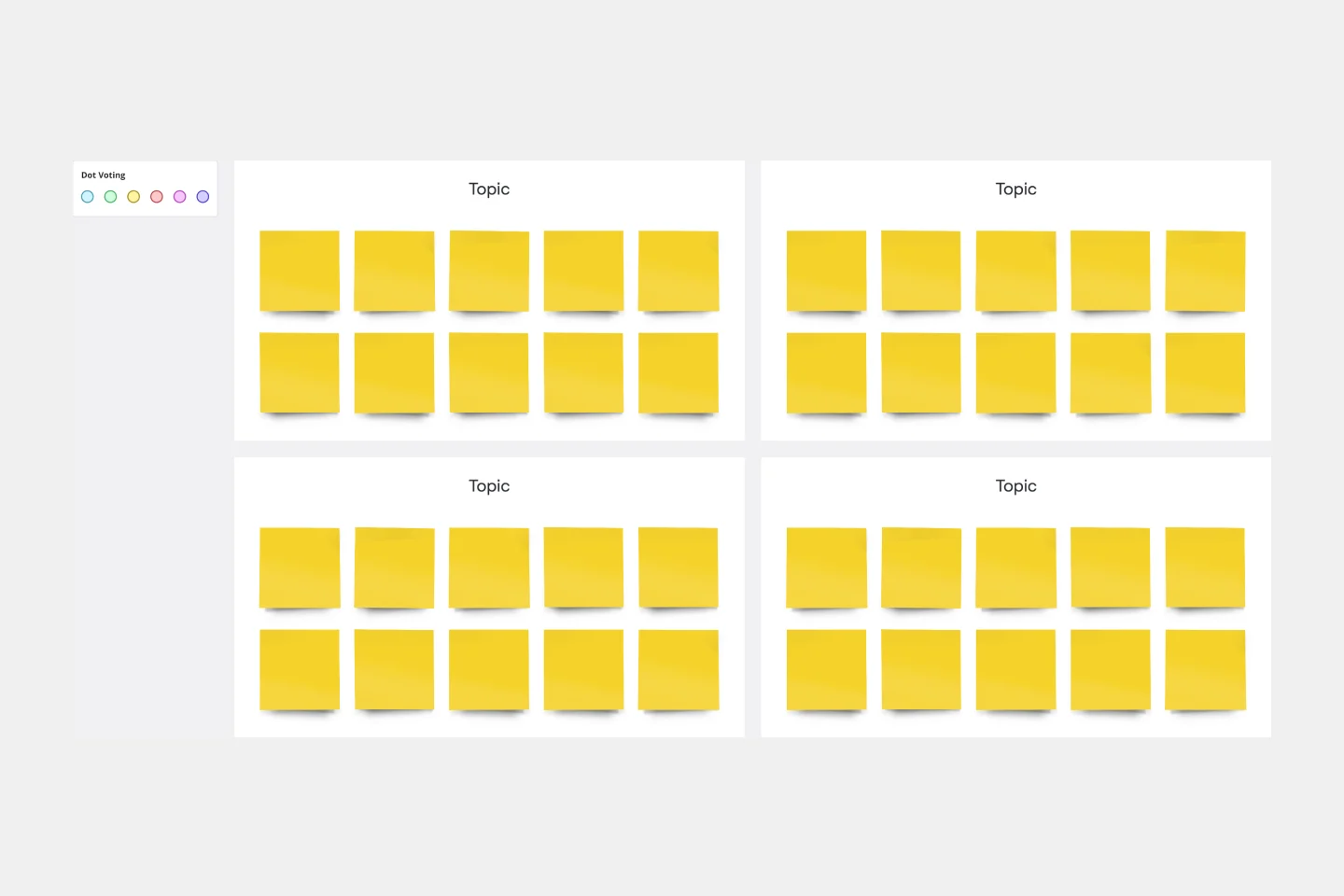 Miro を使えば、対面でもリモートでも、スプリントをより簡単に実行できます。使いやすい無限大のキャンバスなら、コンセプトを可視化したり、付箋を追加してアイデアをまとめたり、議題について参加者が投票したりといったことも可能です。また、終了後にセッションの内容や画像を編集する必要もありません。