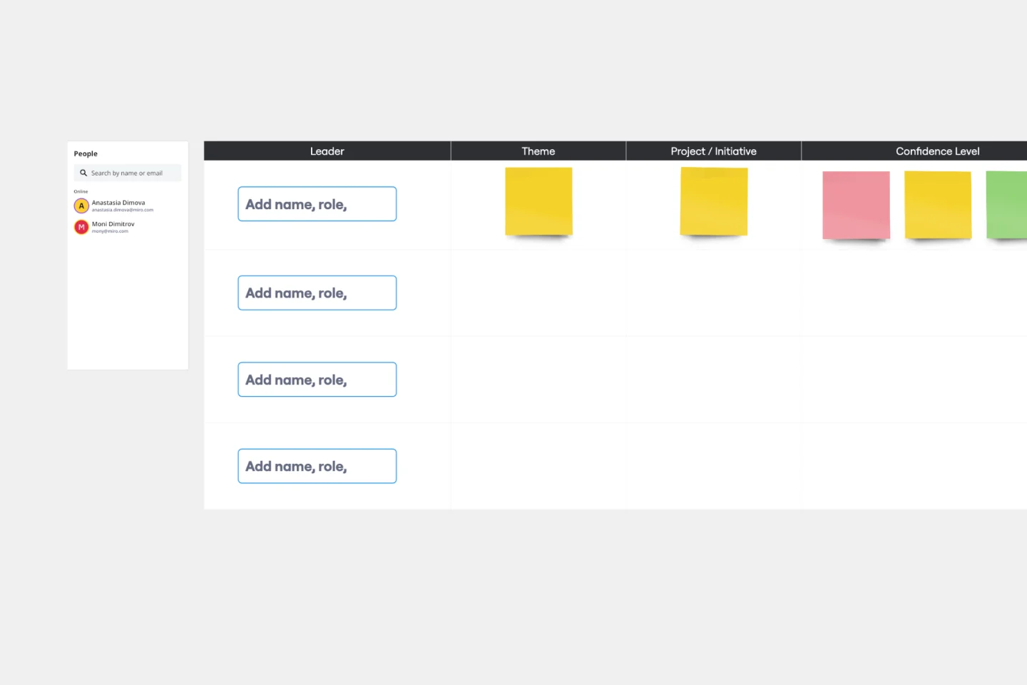 Miro では簡単にプロジェクトメンバーと情報を共有することができます。 スプレッドシートやエクセルではできない、自由なコラボレーションを Miro で楽しみましょう。