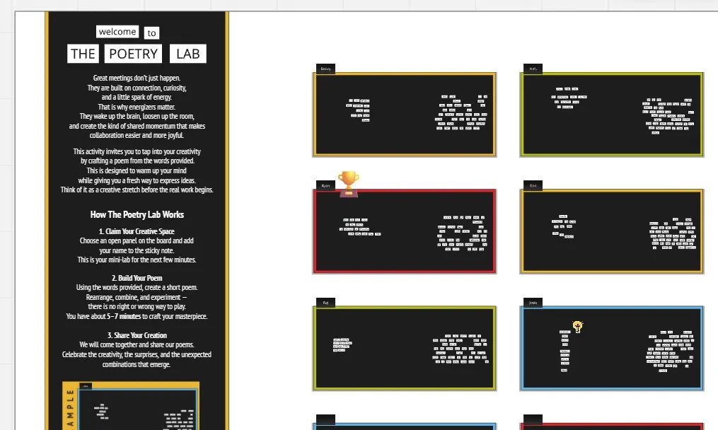 コミュニティーからの最高のアイスブレーカー テンプレートで、会議に楽しさとエネルギーを注入しましょう。ハイブリッドでもリモートでも、会議をうまくスタートさせ、信頼を築き、ユーザーがお互いを知ることを可能にします。