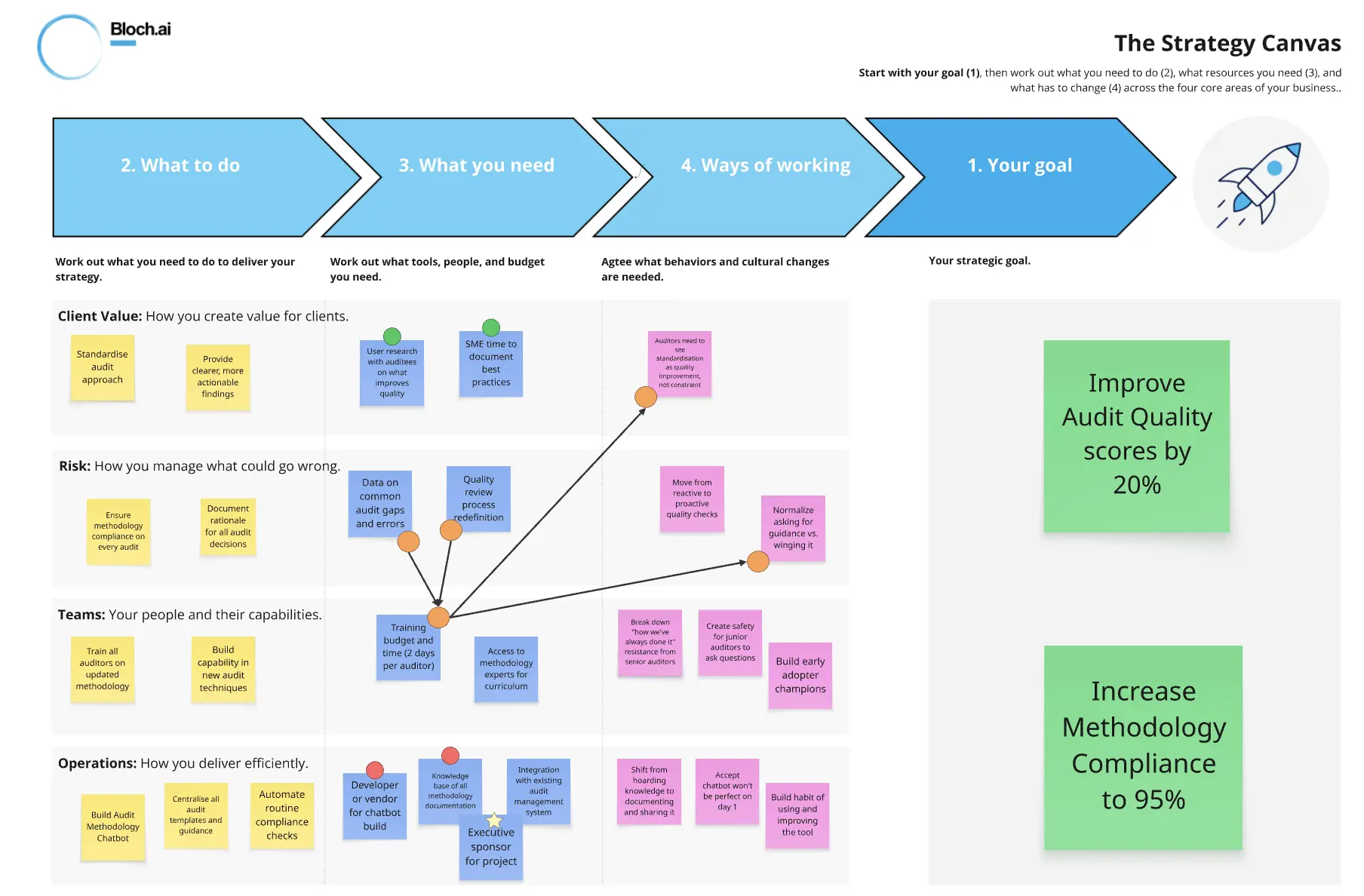 Propel your plans from strategy through to execution with templates for planning sessions, plan prioritization, visual presentations, and beyond. Visually map processes and have a shared understanding of what to do next.