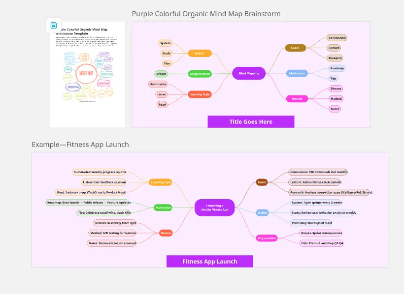 Burza mózgów: Niezależnie od tego, czy generujesz pomysły na projekt, planujesz wydarzenie, czy szukasz rozwiązań dla problemu, mapy myśli pomagają w kreatywnym i rozbudowanym organizowaniu myśli.