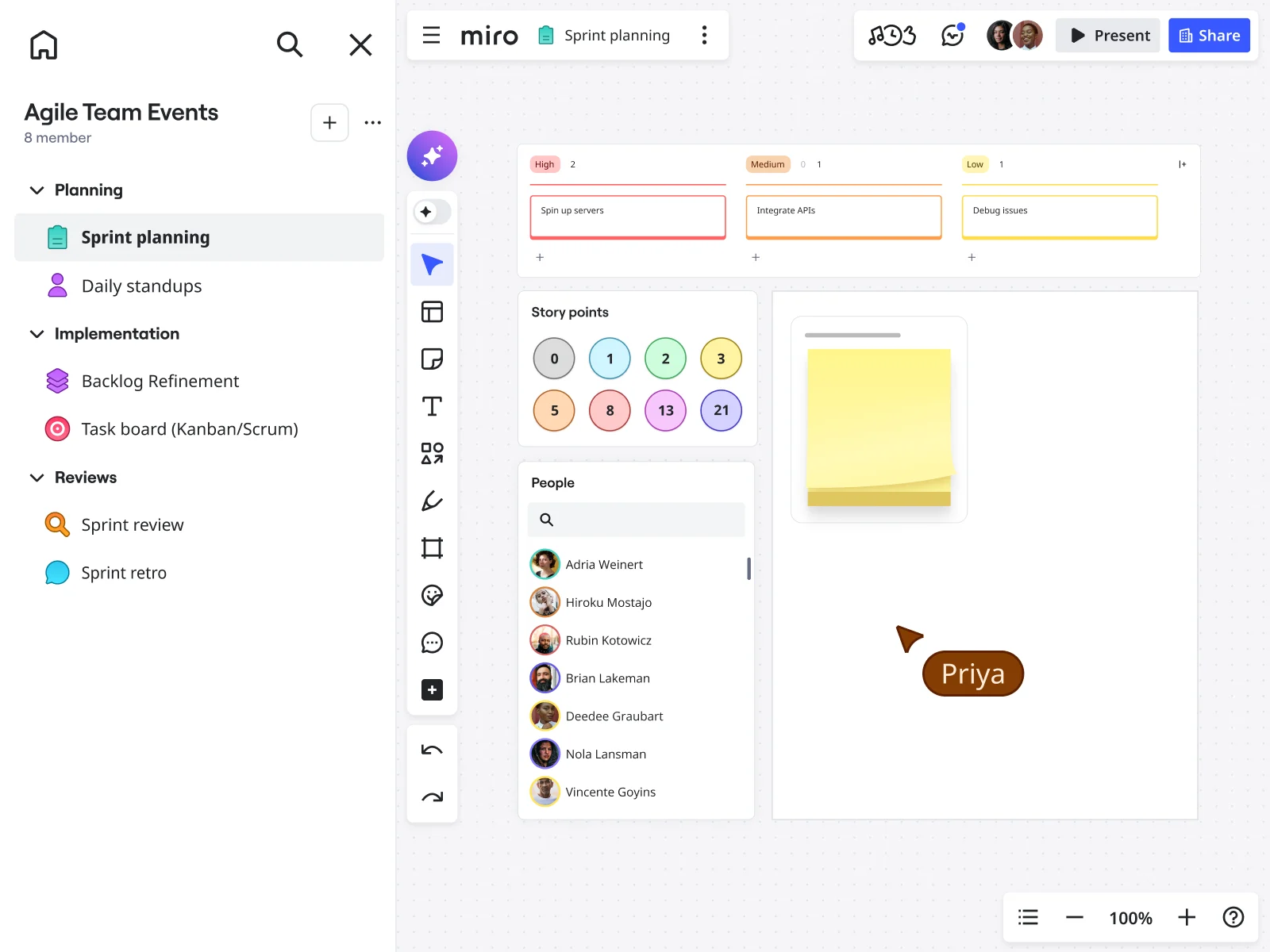 Create custom views of tasks and capacity using Miro Planner — integrated with Jira and Azure DevOps.