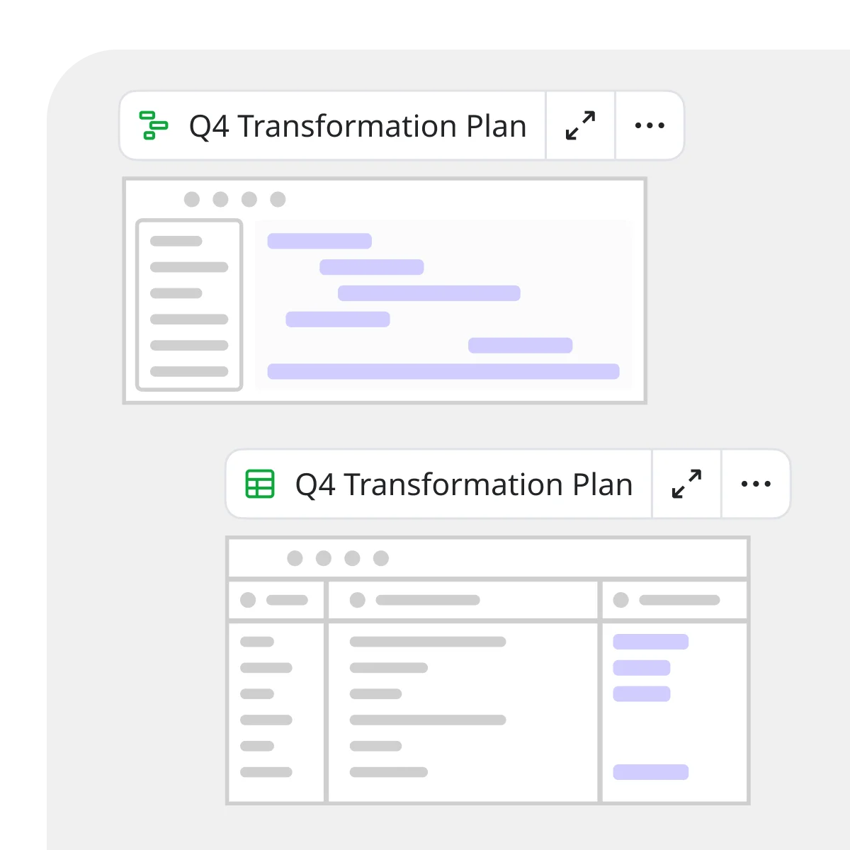 Leverage Timeline, Kanban, and Tables to organize your priorities and track dependencies between teams. Full visibility, fewer risks.