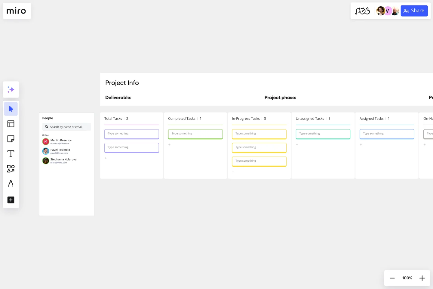 Miro’s innovation workspace is the ultimate tool for managing projects, making it easy to use project charter templates effectively while fostering collaboration and visual clarity. Let’s dive into the features that make Miro a game-changer for project management: