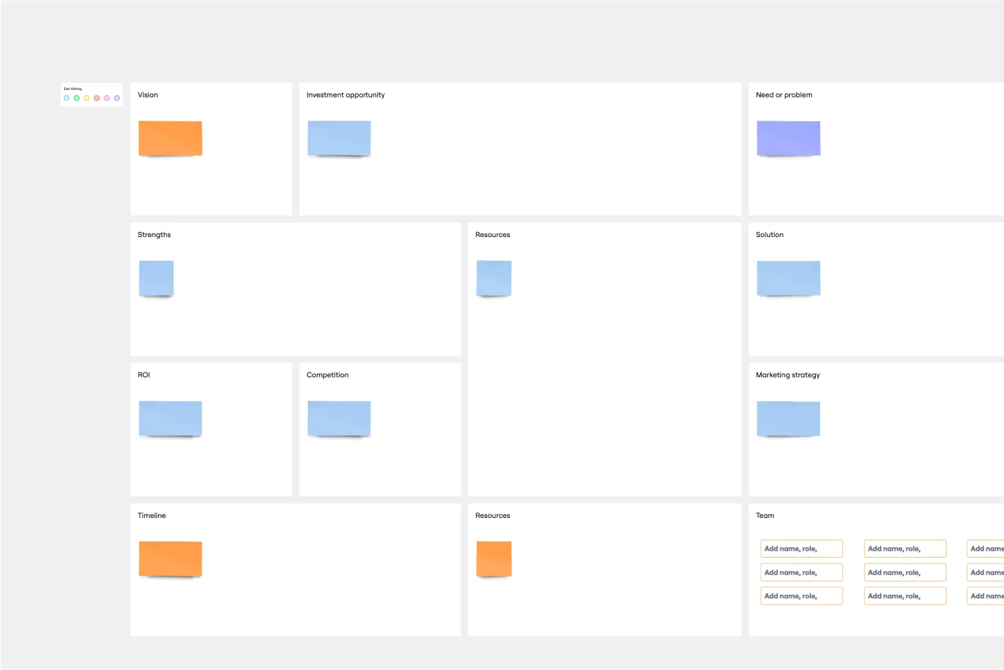 A coleção de modelos de liderança da Miro oferece aos líderes e gestores as ferramentas necessárias para guiar suas equipes de maneira eficaz. Esses modelos proporcionam uma abordagem estruturada para diversas tarefas de liderança, desde o planejamento estratégico até o desenvolvimento da equipe. Ao utilizar esses modelos, os líderes podem simplificar seus processos, melhorar a comunicação e promover um ambiente colaborativo.