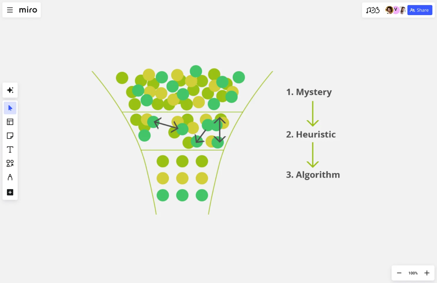 - During the next stage, we still don’t have a clear problem statement, but at least we know what we need to pay attention to, which means that we “drop out” the useless information and try to concentrate on the important parts (this stage is called ”heuristic”).