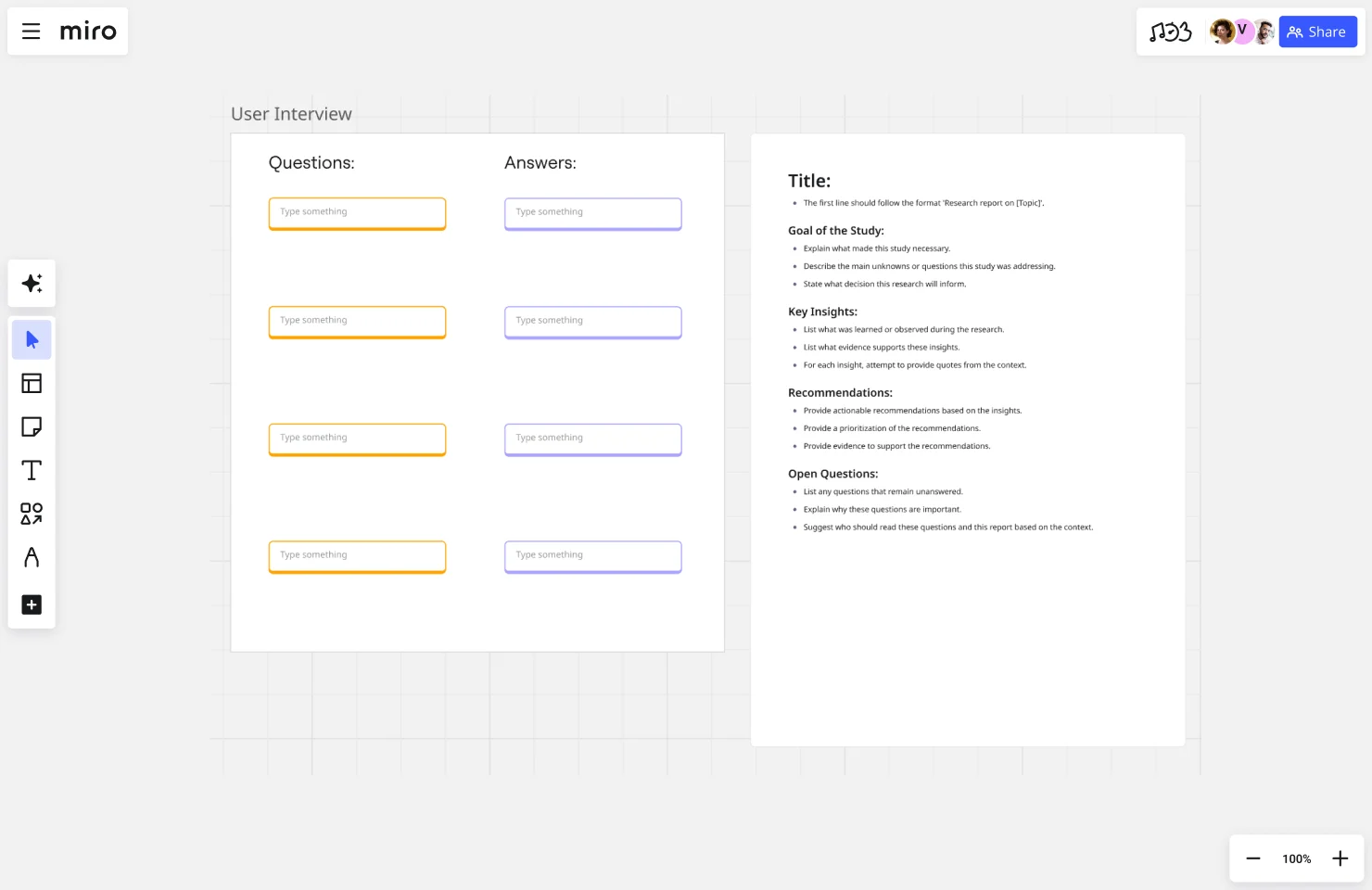 How Miro helps: Use Miro’s User Interview Template to structure conversations and capture insights visually. Map user journeys to understand their complete experience, not just isolated touchpoints.