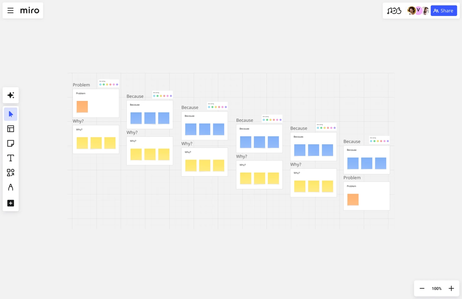Try Miro's 5 Whys Template Free →