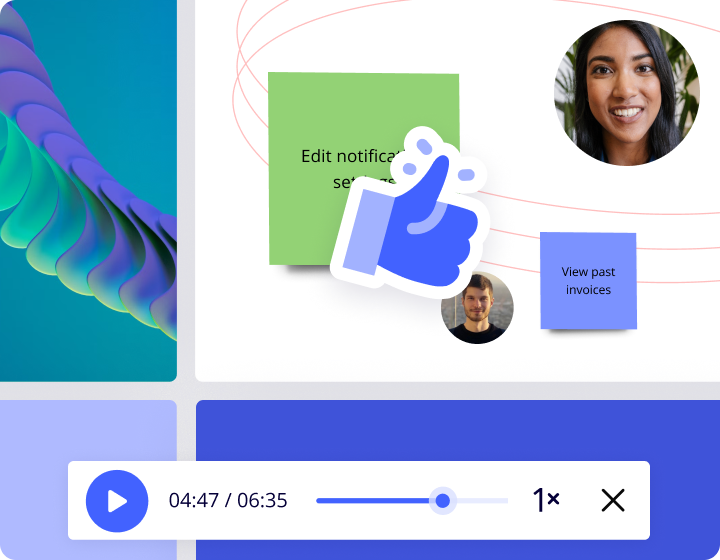 Watch a Talktrack in action. Talktracks are tied to the board so viewers can reposition the video on the canvas, add comments & sticky notes, and view past recordings, all in one place.