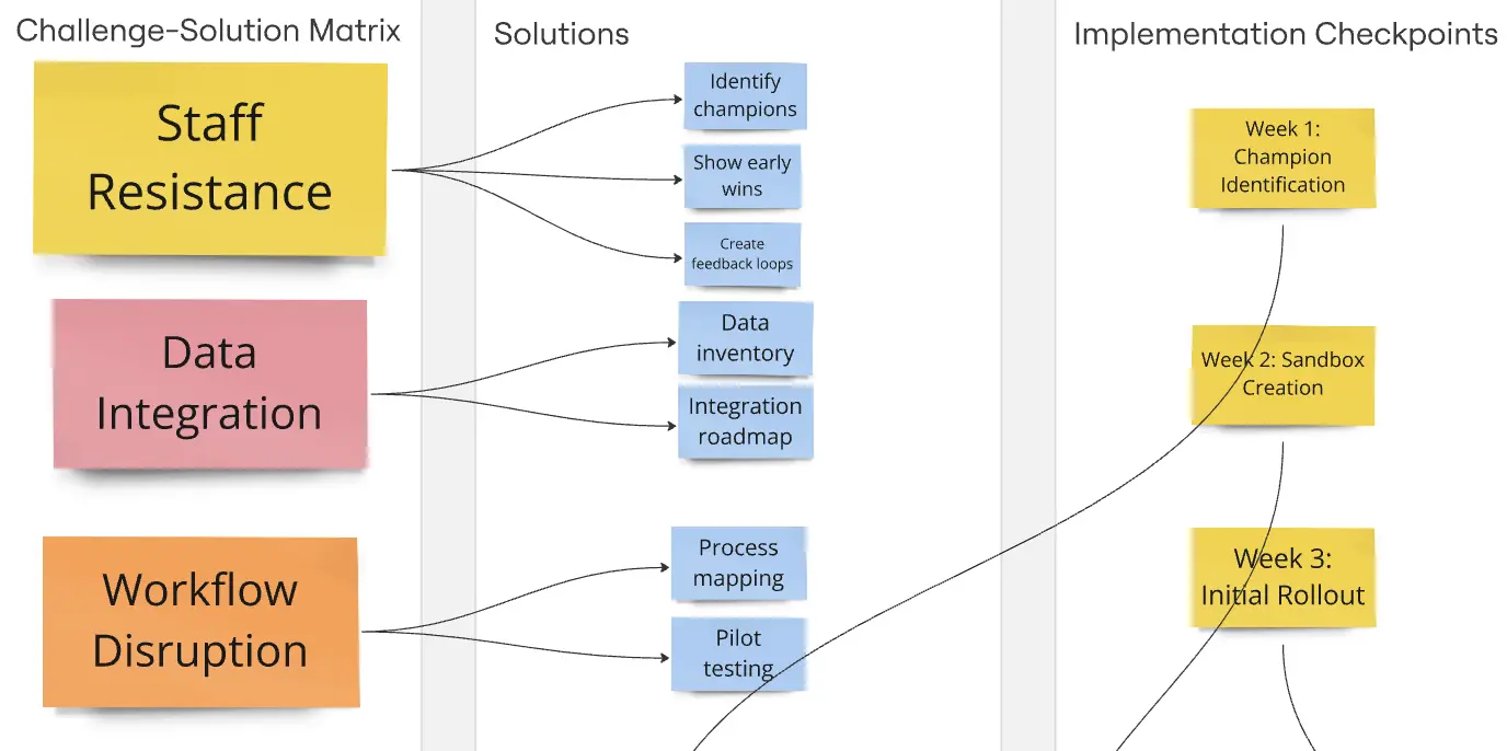 Visual frameworks cut through the abstraction fog. Your data science team can show exactly where bias might enter your ML pipeline. Your change management lead can visualize how different departments will experience the rollout. Everyone sees the same picture, which means fewer misalignments and faster decisions.