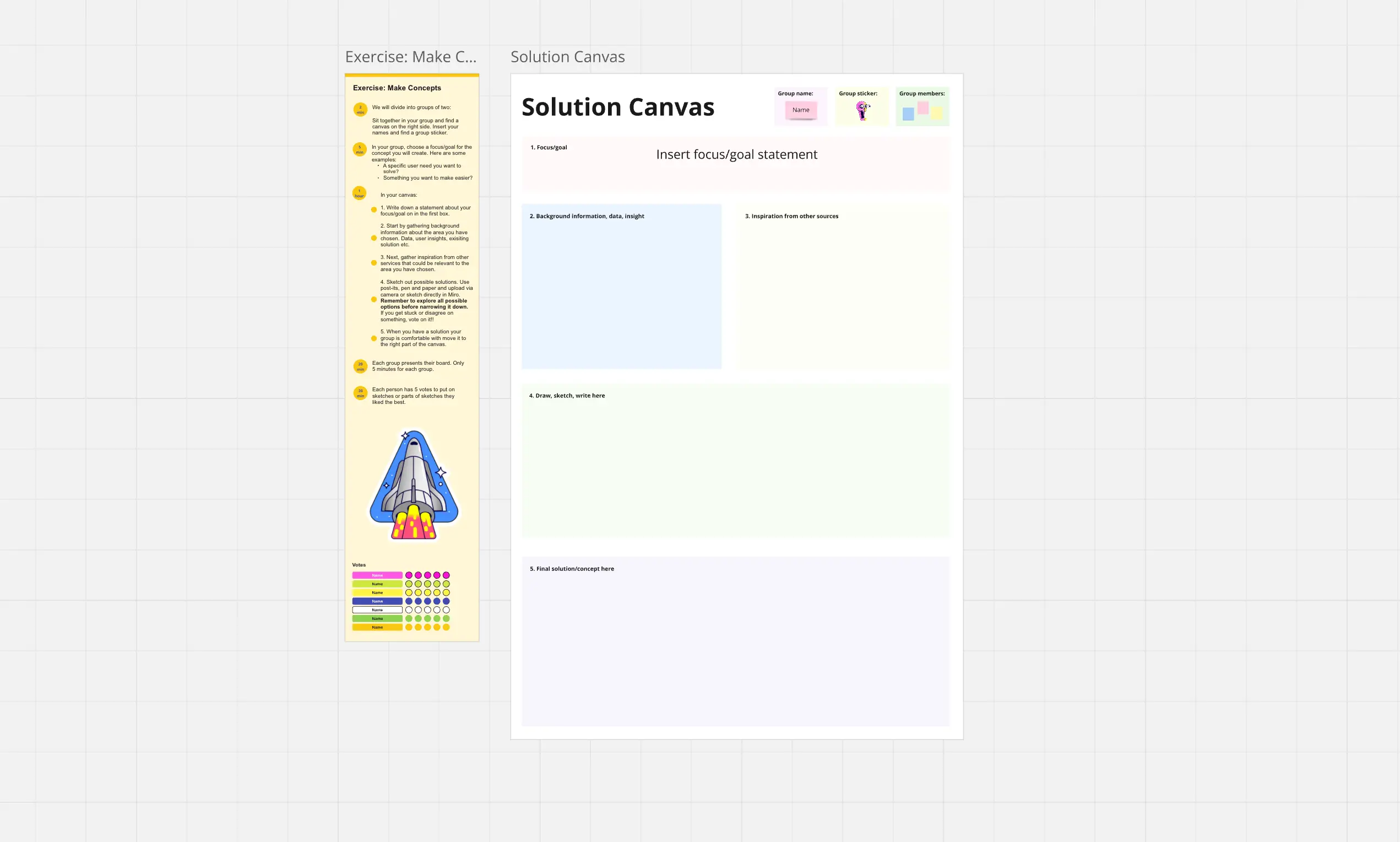 1. Select the template: Choose which canvas template fits your needs. 2. Customize the template: Use our toolbar to edit and customize the template. Add text, images, and other elements to tailor it to your project. 3. Collaborate with your team: Share the template with your team members. They can join the board in real time, providing input and making edits as needed. 4. Save and share: Once your canvas template is edited, save it and share it with stakeholders or export it for presentations and reports.