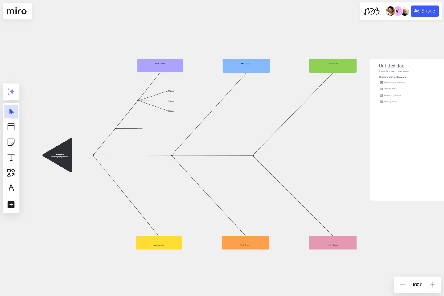 Collaborative analysis: You can engage in real-time collaboration with your team members directly on the Miro board. This will foster collective analysis and brainstorming sessions.