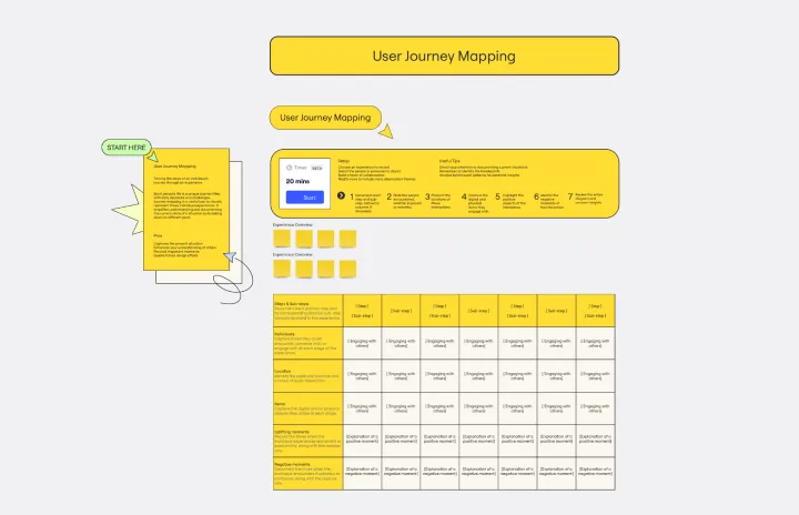 Each person's life is a unique journey filled with daily decisions and challenges. The User Journey Mapping Template is a useful tool to visually represent these individual experiences. It simplifies understanding and documenting the current state of a situation by breaking down its different parts.