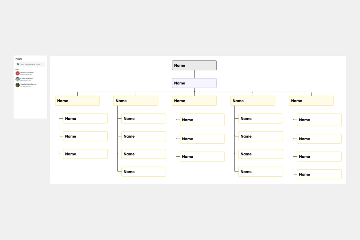 Using Miro's org chart templates and the org chart widget, you can streamline your organizational planning and improve employee visibility and collaboration across your organization.