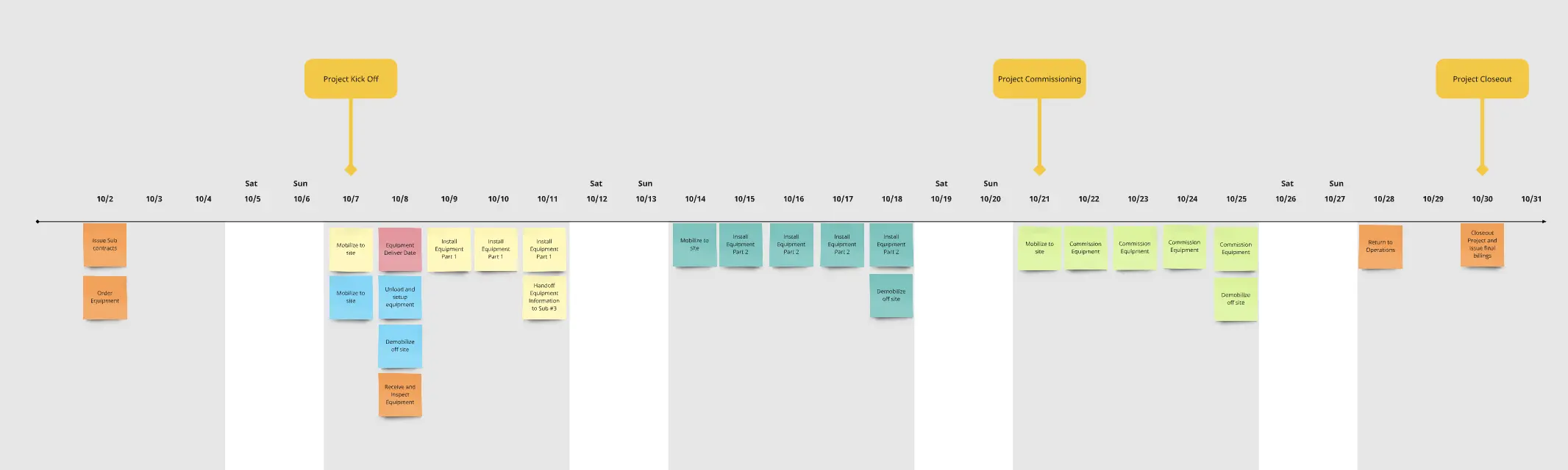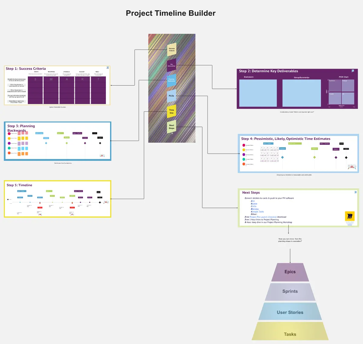 Miro's extensive project management template collection helps you to move projects forward, bring people together, and solve bottlenecks that stand in the way of success. Use one of our many project management examples as a single source of truth for timelines, updates, feedback rounds, and the work itself. Your team (and browser tabs) will thank you.