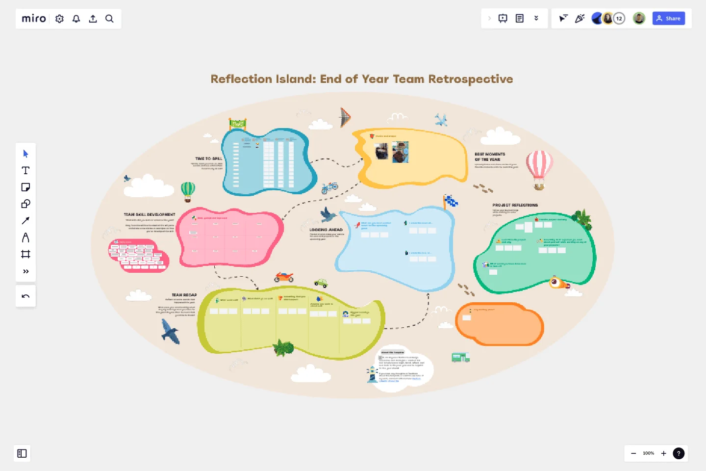 This End-of-Year Retrospective tool is aimed to help teams look back on the past year, bond, share some laughs, and be hopeful for the year ahead.