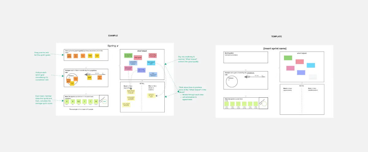 Facilitates open communication: The templates are designed to foster open and honest communication among team members. By providing prompts and sections for feedback, they help create a safe space for discussing successes and challenges.