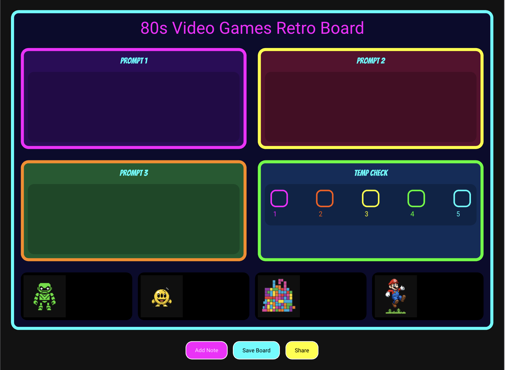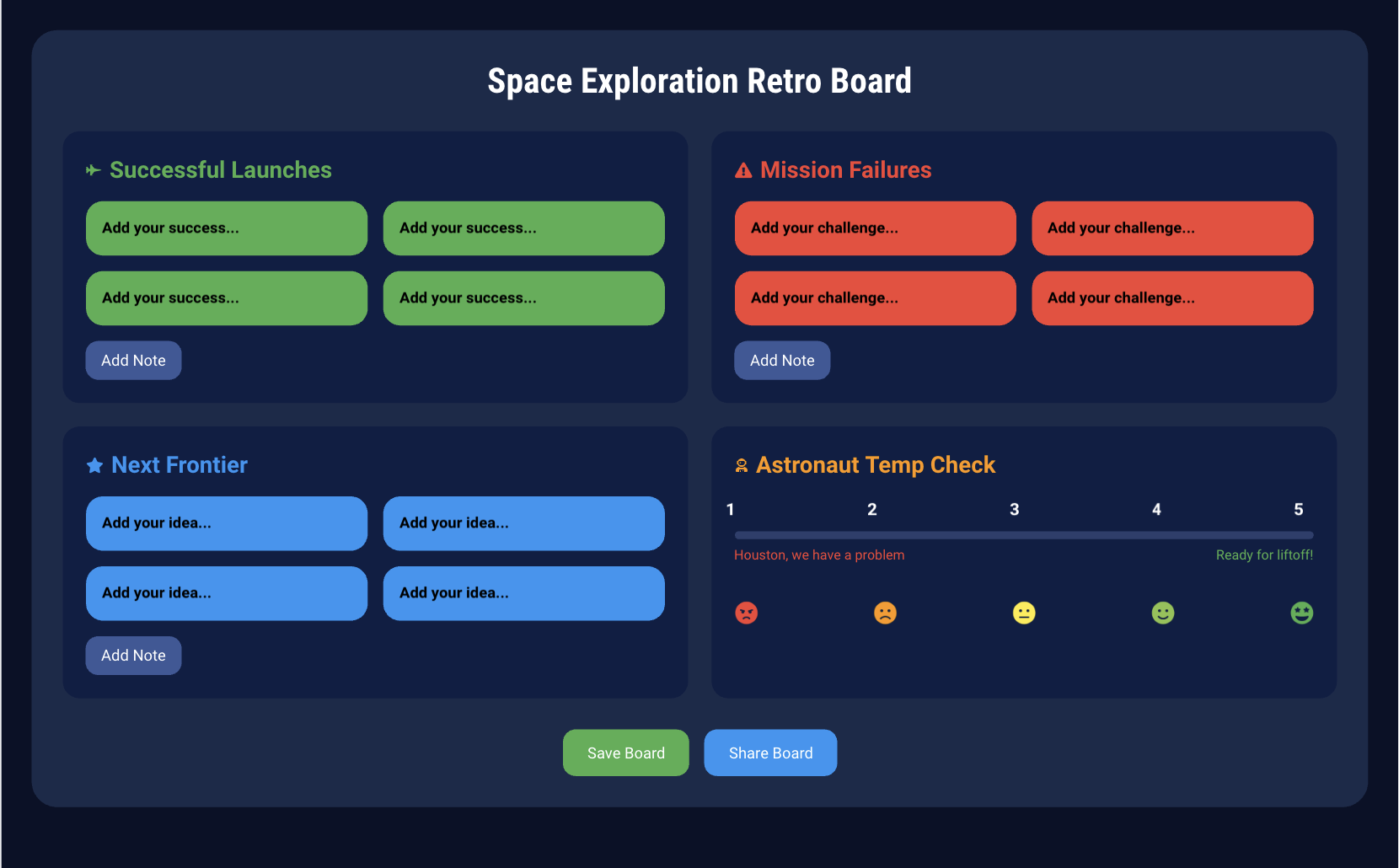 Design a space exploration retro board with astronaut-themed feedback sections.